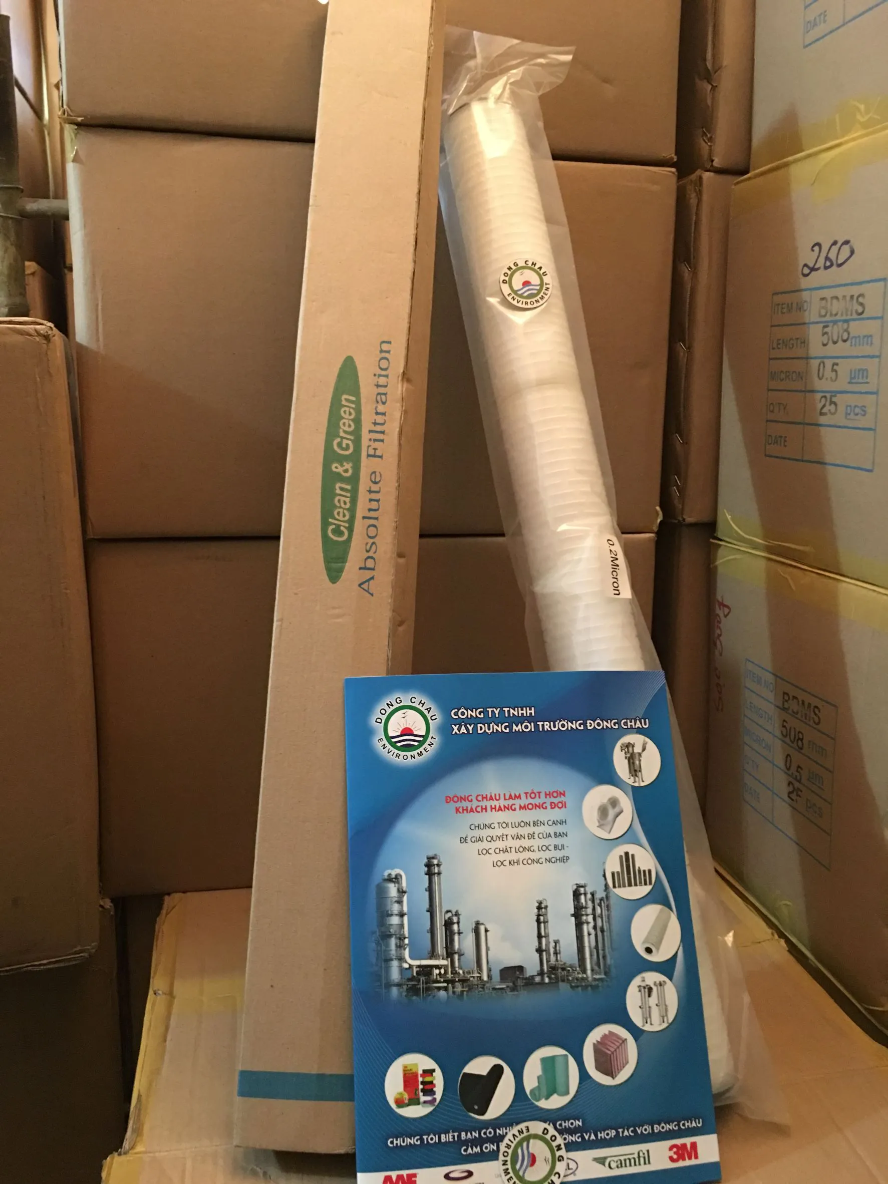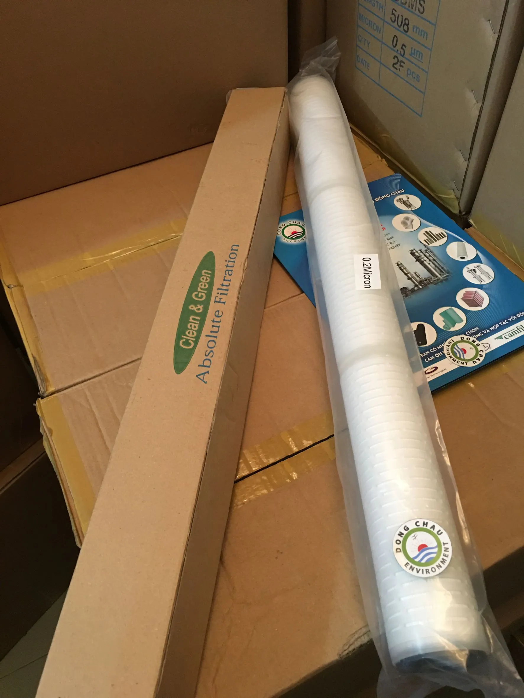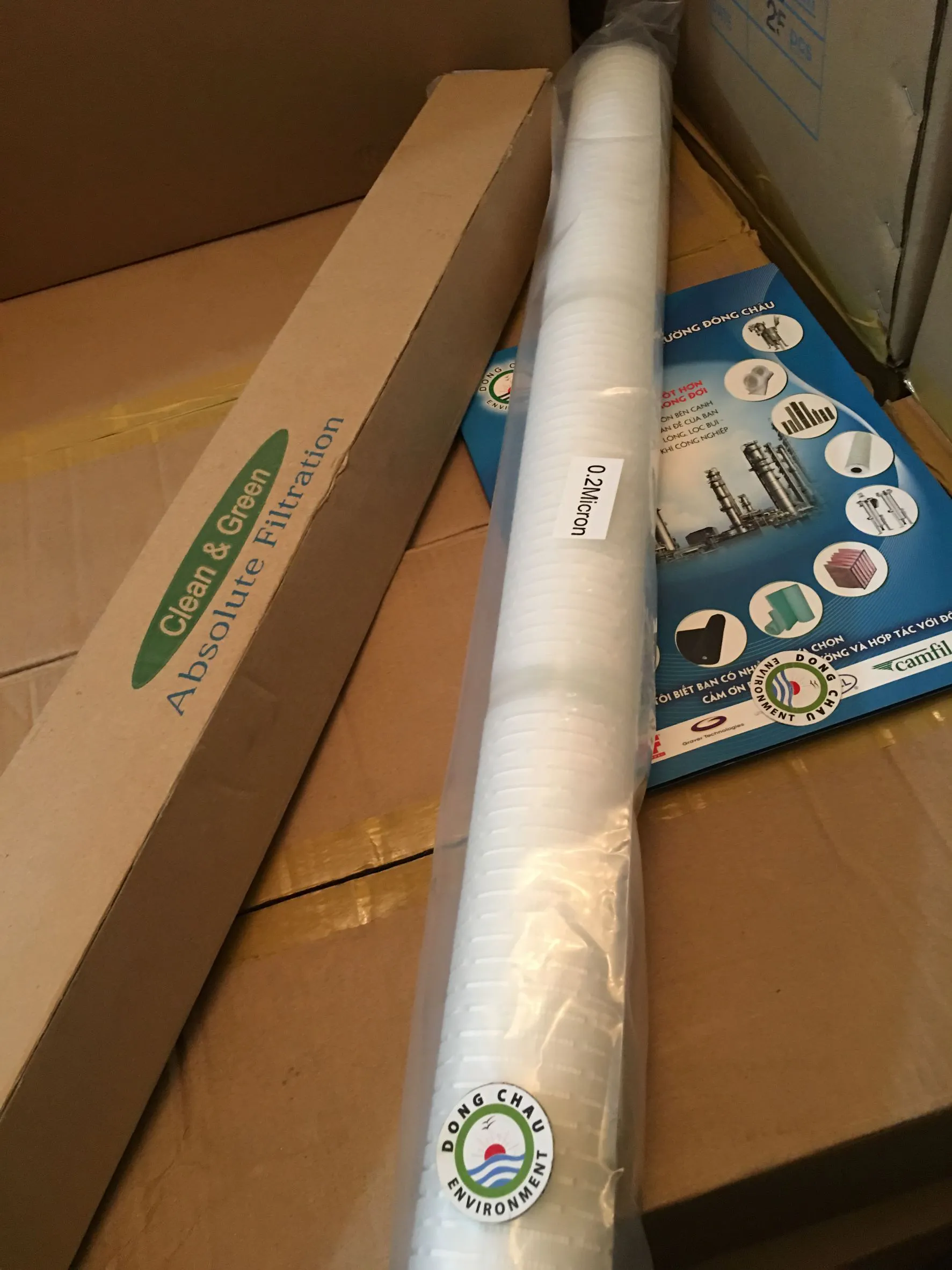Lõi lọc giấy xếp 0.2 micron 30 inch DOE Clean Green khả năng tương thích hoá học tuyệt vời, lưu lượng cao, thọ cao, giá thành thấp, lọc rộng.
