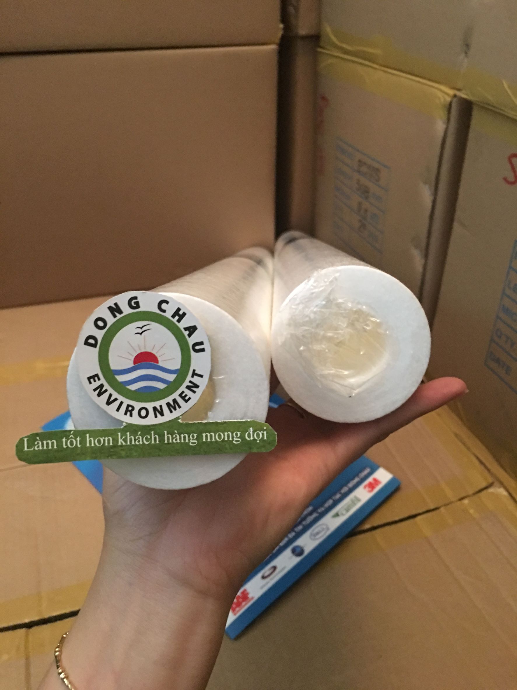 Lõi lọc nén 25 micron 20 inch Aqua mang thành phần hóa học PP sạch, phù hợp với tiêu chuẩn vệ sinh thực phẩm.